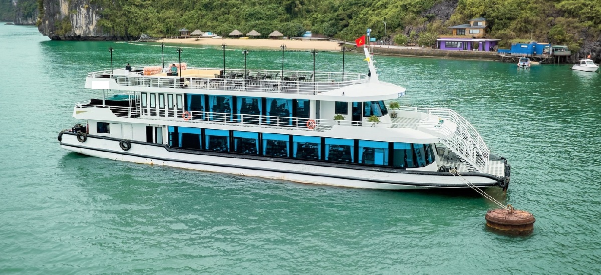 Với thiết kế 3 tầng tinh tế, Tàu mang đến không gian rộng rãi và tiện nghi, tạo nên sự thoải mái tối đa cho du khách. Không gian nội thất sang trọng được bài trí tỉ mỉ từ phòng nghỉ đến nhà hàng, quầy bar và khu vực sundeck thoáng đãng, mang đến những phút giây thư giãn đẳng cấp. Hệ thống giải trí, âm thanh, ánh sáng hiện đại trên du thuyền cũng góp phần tạo nên trải nghiệm tuyệt vời trong suốt hành trình. Bên cạnh đó, đội ngũ nhân viên được đào tạo chuyên nghiệp, tận tâm phục vụ, luôn sẵn sàng đáp ứng mọi nhu cầu, hứa hẹn một hải trình đáng nhớ trên vịnh Hạ Long.